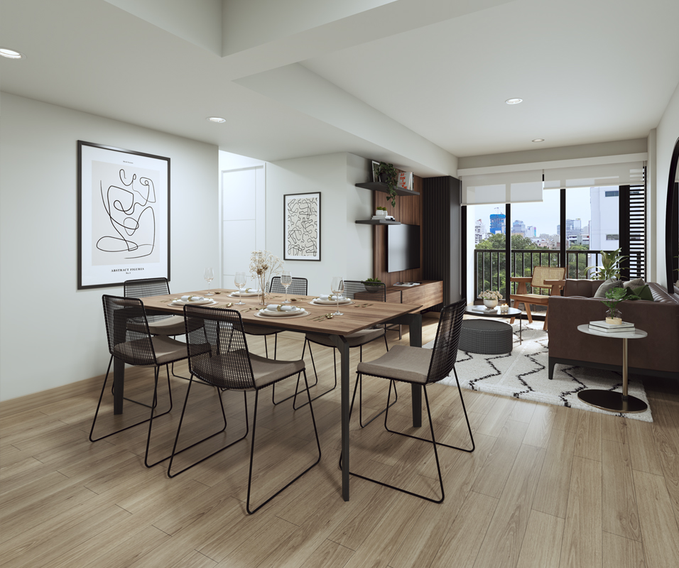 Todos los departamentos tienen vista a la calle, con ventanas muy amplias y mucha iluminación natural.